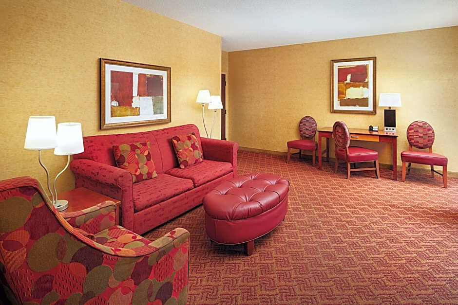This very spacious suite features a large separate seating area with sofa bed, microwave, and small refrigerator.