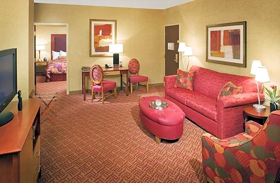 This suite features a separate seating area with sofa bed, flat-screen cable TV, and microwave. A small refrigerator is also included.